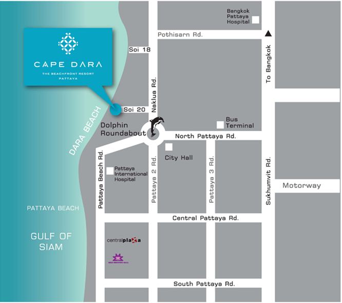 การ เดินทางมาไม่ยากเลยครับ วิ่งรถดิ่งตรงเข้าพัทยาถ้ามาจากมอเตอร์เวย์ หลังเลี้ยวรถเข้าเส้นทางพัทยาแล้ว วิ่งยาวไปพัทยาเหนือแล้วเลี้ยวขวา จากนั้นมาสุดทางเจอวงเวียน ปลาโลมา ให้เลี้ยวซ้ายไปอีก ไม่ถึง 100 เมตรก็ถึงแล้วละครับ มีป้ายบอกชัดเจน